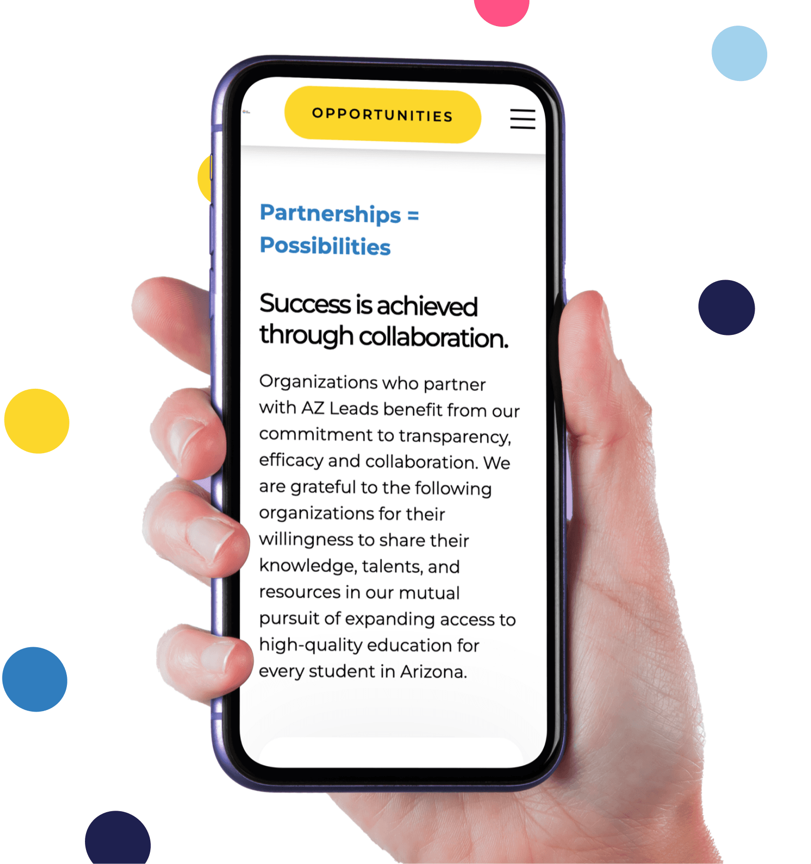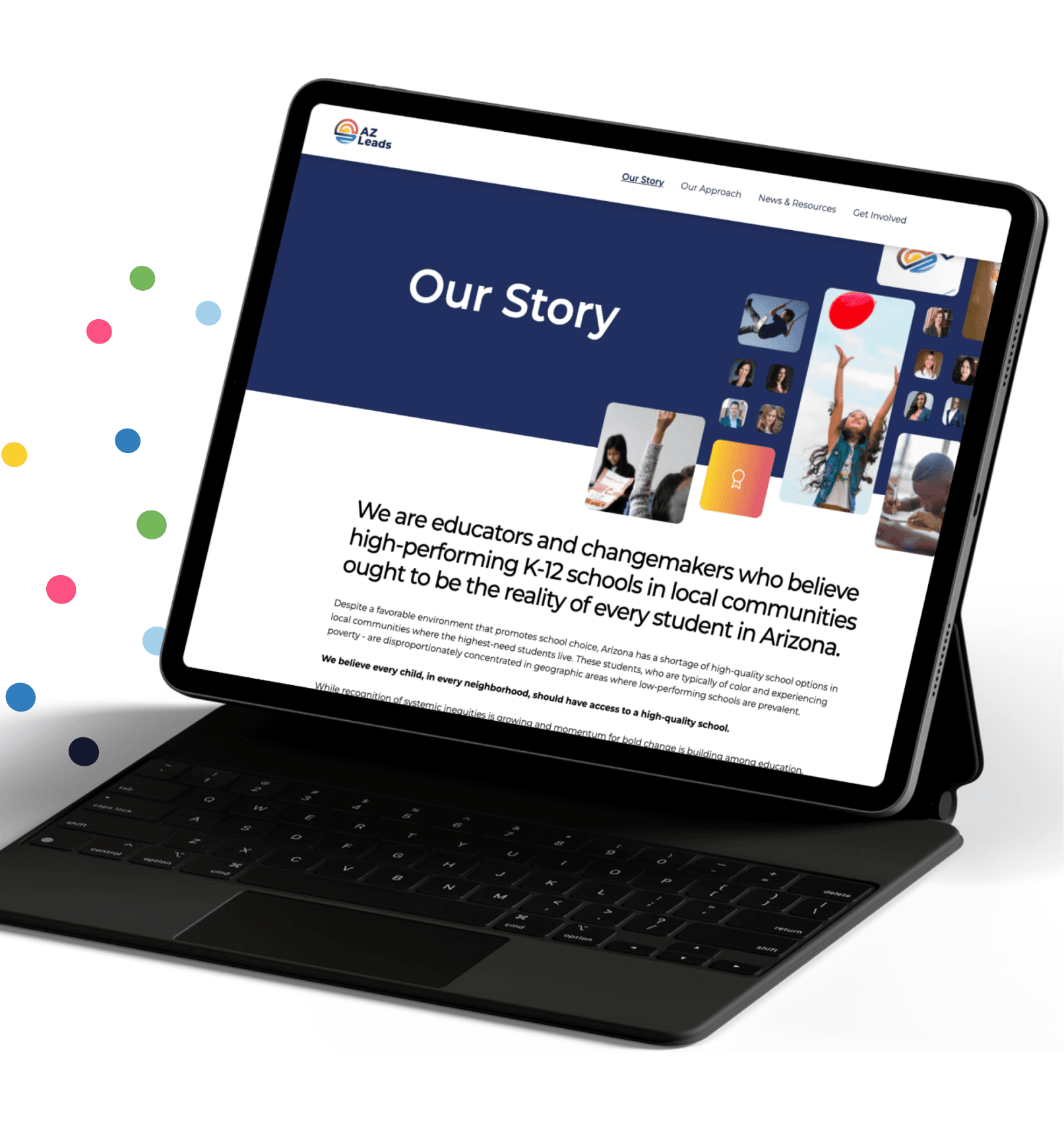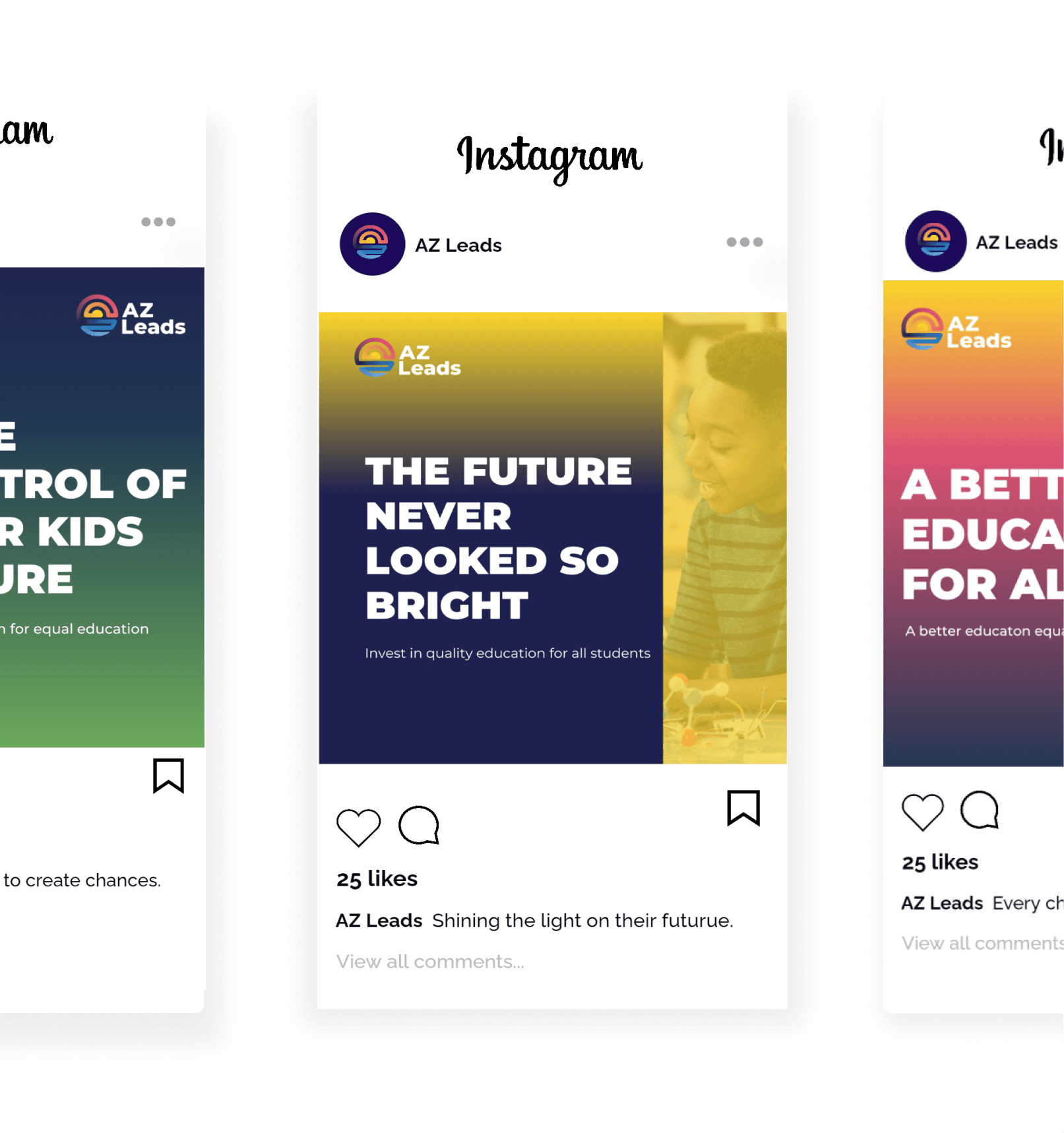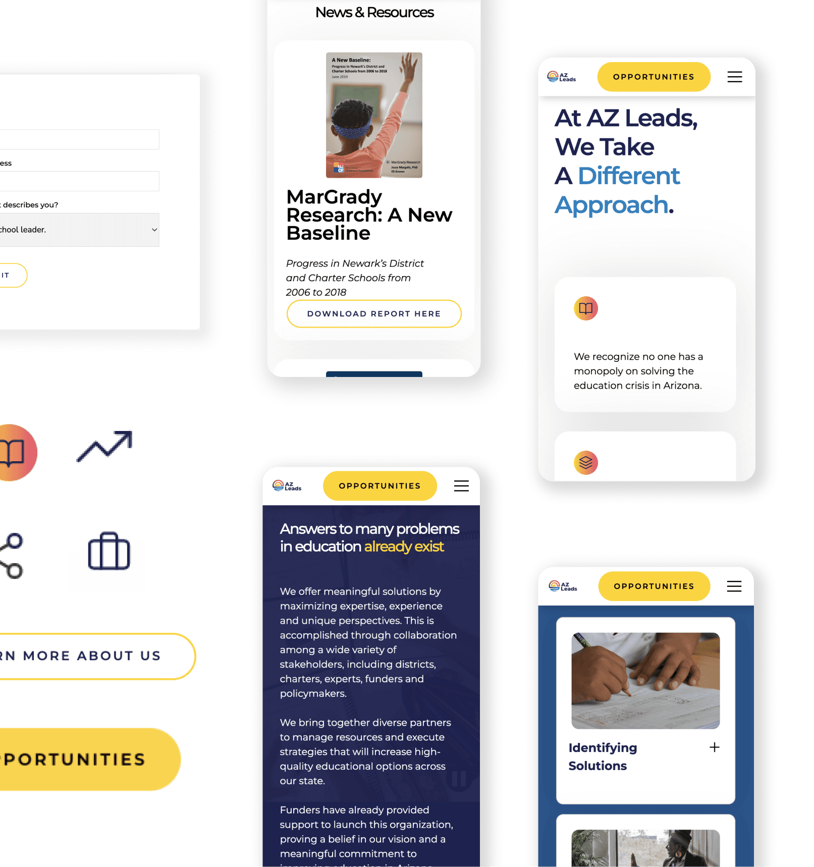 AZ Leads is a nonprofit accelerating access to high-quality K-12 schools for underserved Arizona communities. They needed a identity system and web presence that amplified their commitment to student's education and empowered them to affect change throughout the state.